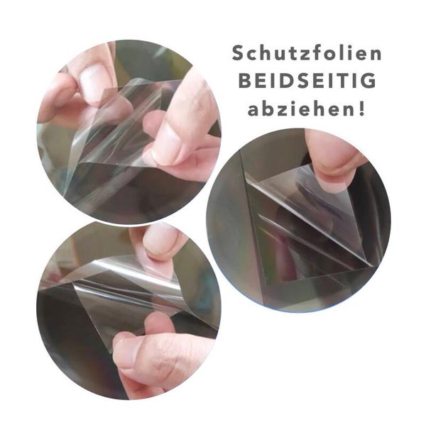 Vor Gebrauch beidseitig die Schutzfolien abziehen!